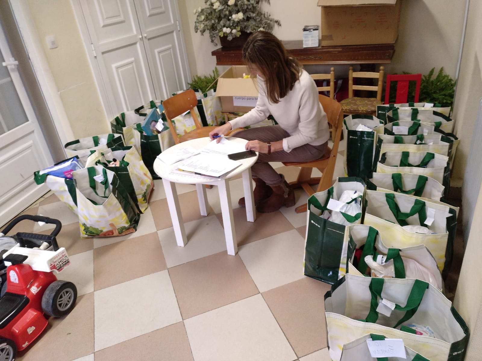 Casi 30 mujeres acudieron en diciembre al santuario de Schoenstatt en Serrano para recibir una generosa canastilla con pañales, leche, papilla, jabón y cremas, toallitas, ropa, juguetes y dulces de Navidad. Además entregamos algunos carritos y sillas de bebé